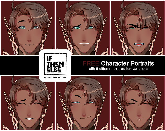 The free version of this asset includes 9 static PNG portraits that you can use in your free, non-commercial games as long as you credit IF THEN ELSE Interactive Fiction with a clickable link to this page. You may not modify these files.