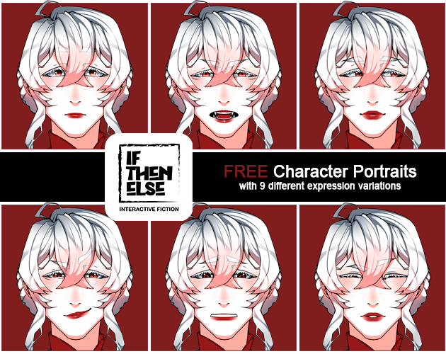 The free version of this asset includes 9 static PNG portraits that you can use in your free, non-commercial games as long as you credit IF THEN ELSE Interactive Fiction with a clickable link to this page. You may not modify these files.