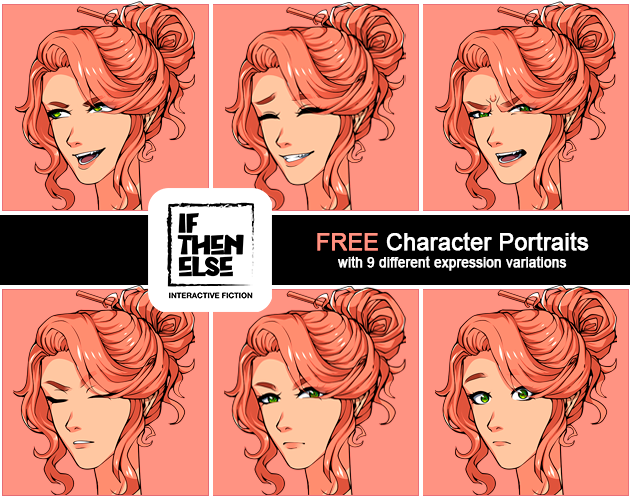 The free version of this asset includes 9 static PNG portraits that you can use in your free, non-commercial games as long as you credit IF THEN ELSE Interactive Fiction with a clickable link to this page. You may not modify these files.